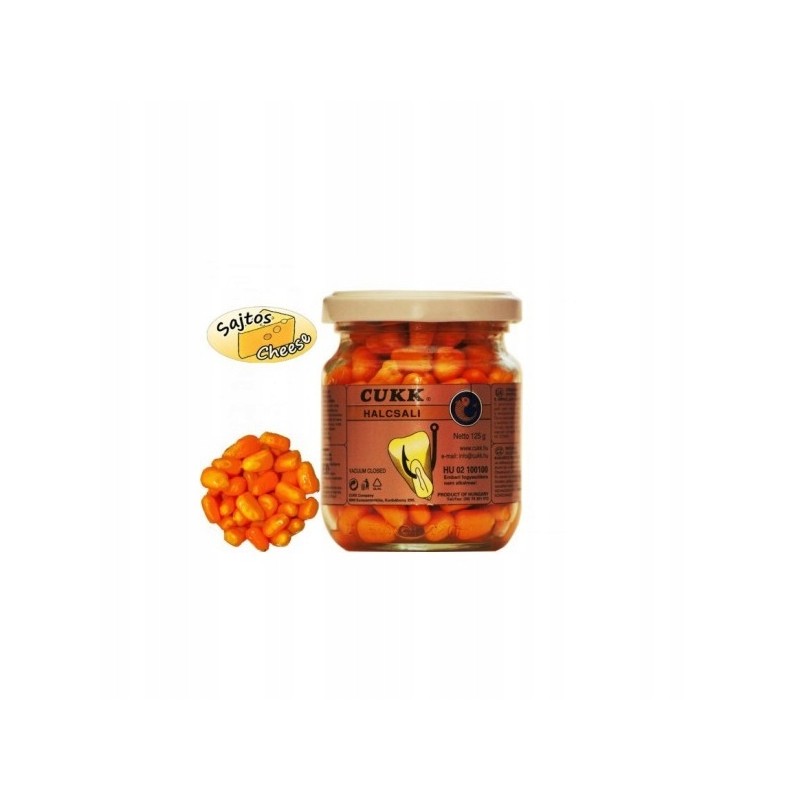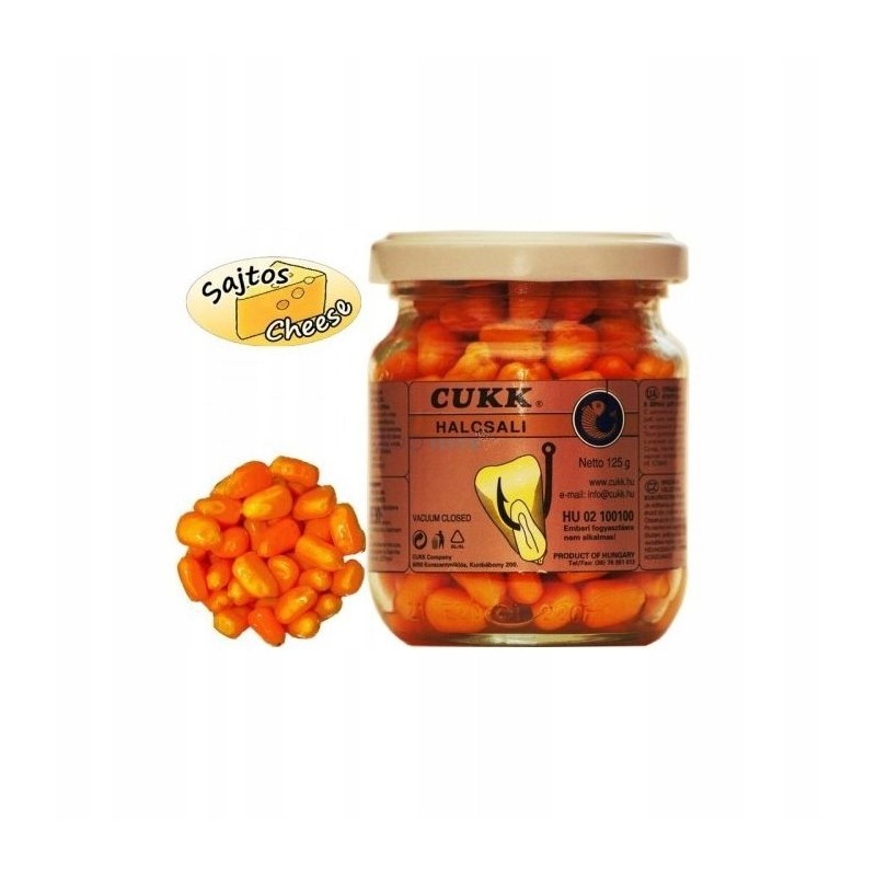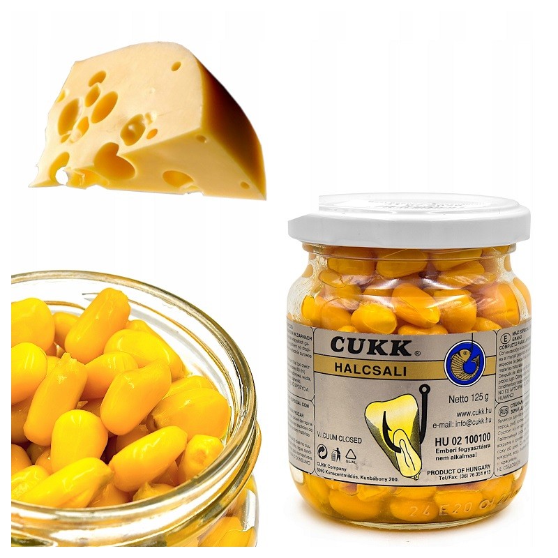 Różne rodzaje kukurydzy wędkarskiej w słoiczku CUKK, idealne pełne ziarna kukurydzy. Twardość ziaren i ich wytrzymałość na haczyku są idealne. Po otwarciu tego produktu można go używać przez wiele miesięcy bez ryzyka zepsucia. Barwniki stosowane do różnych rodzajów kolorowej kukurydzy wędkarskiej bez zalewy są kwalifikowane jako artykuły spożywcze i nie stanowią niebezpieczeństwa dla zdrowia i środowiska.