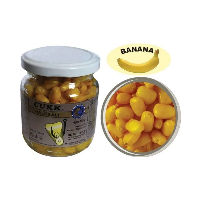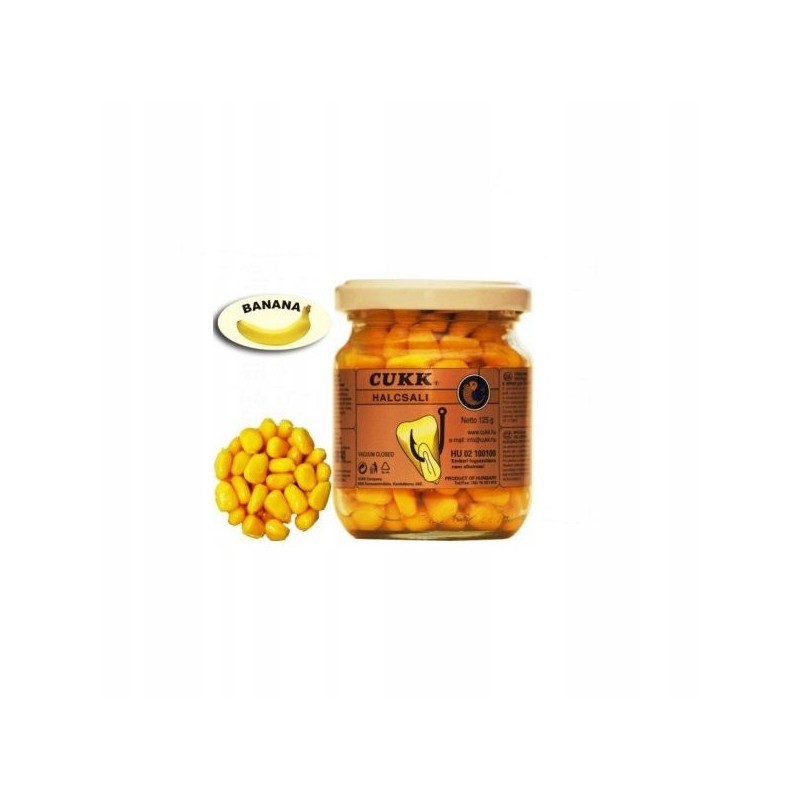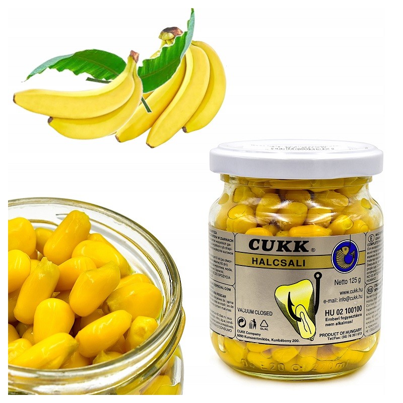 Różne rodzaje kukurydzy wędkarskiej w słoiczku CUKK, idealne pełne ziarna kukurydzy. Twardość ziaren i ich wytrzymałość na haczyku są idealne. Po otwarciu tego produktu można go używać przez wiele miesięcy bez ryzyka zepsucia. Barwniki stosowane do różnych rodzajów kolorowej kukurydzy wędkarskiej bez zalewy są kwalifikowane jako artykuły spożywcze i nie stanowią niebezpieczeństwa dla zdrowia i środowiska.
