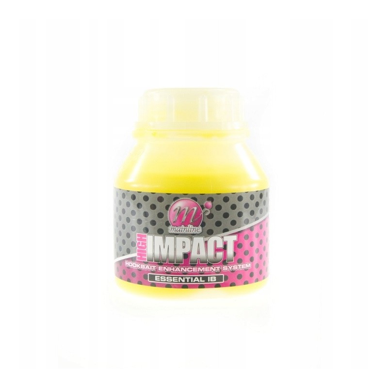 Dip serii High Impact o zapachu Essential IB - owocowym. Dipu używa się do dodatkowego aromatyzowania przynęt i zanęt. Nadaje się do aromatyzowania kulek tonących, kulek pływających pop-up, ziaren oraz pelletów. Aby maksymalnie wzmocnić aromat przynęty, należy zamoczyć przynętę w dipie na kilka godzin lub nawet na kilka dni przed wrzuceniem do wody. Dipy są szczególnie polecane na muliste zbiorniki (nasączenie kulek dipem ogranicza ich nasiąkanie zapachem mułu). Zalecamy dipować kulki w niewielkiej ilości zalewy lub stosować specjalne pojemniczki, które stosownie ograniczą jego ilość. Dip nie rozpuszcza PVA.