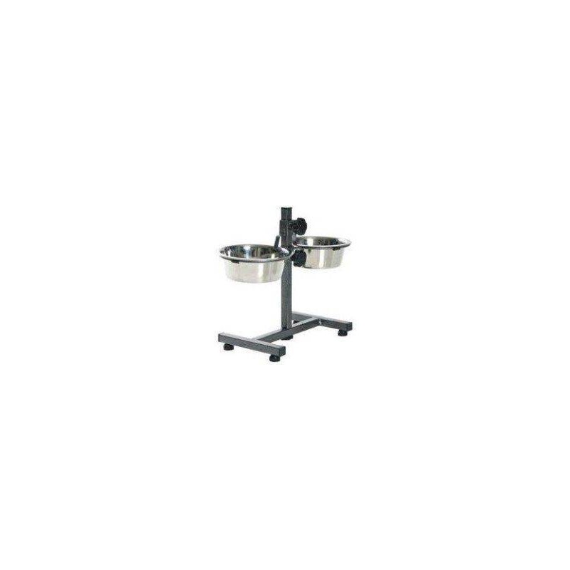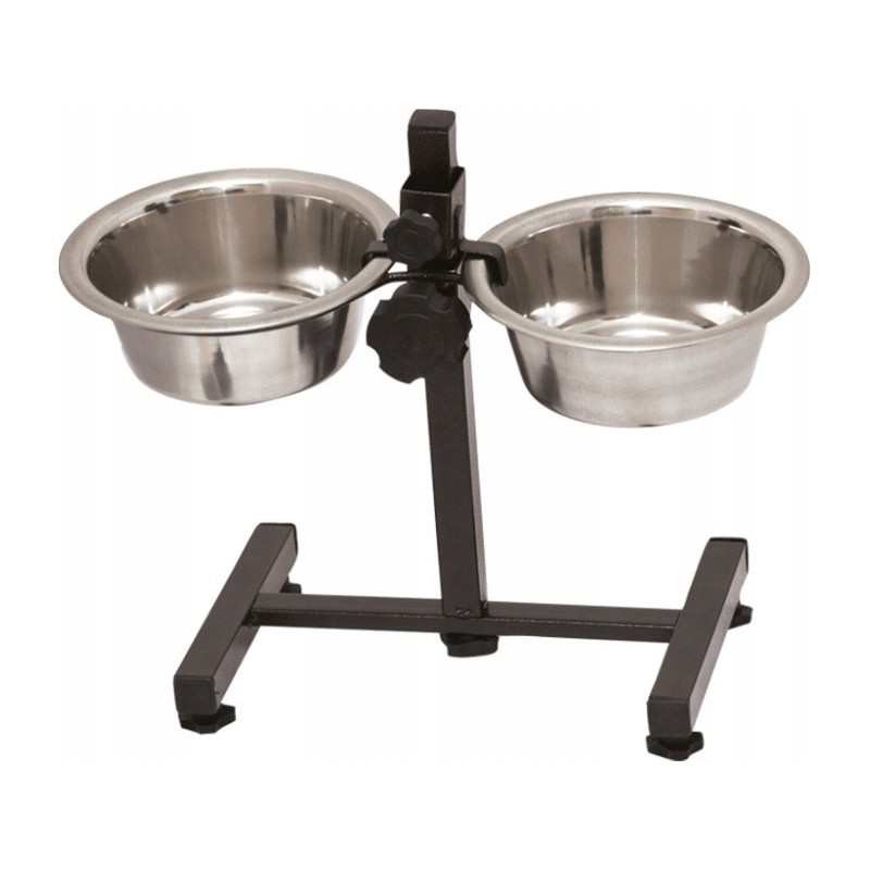 Konstrukcja stojaka wykonana jest z wytrzymałego metalu pokrytego proszkowo, co gwarantuje stabilność i odporność na uszkodzenia. Nogi stojaka zabezpieczone są plastikowymi nakładkami, które chronią podłogę przed zarysowaniami. Samo naczynie to solidna, stalowa miska o pojemności 2,8 litra, która jest łatwa do utrzymania w czystości.