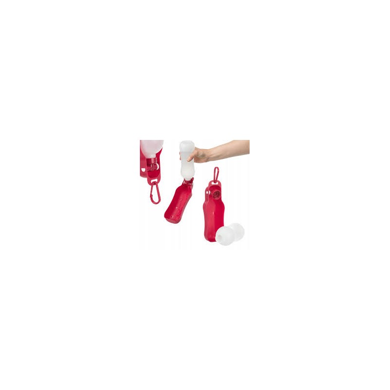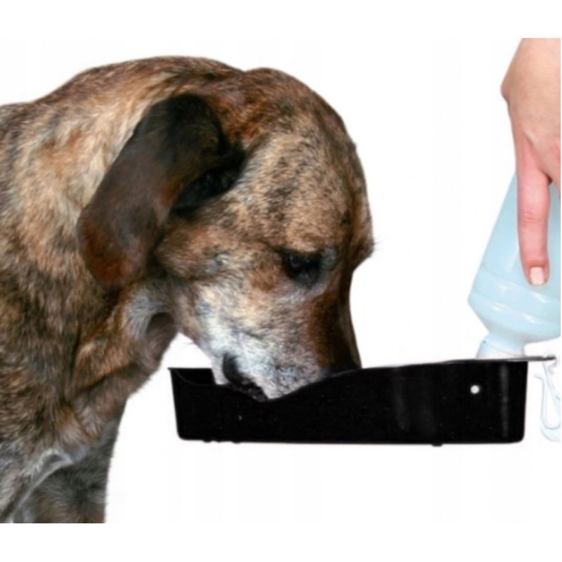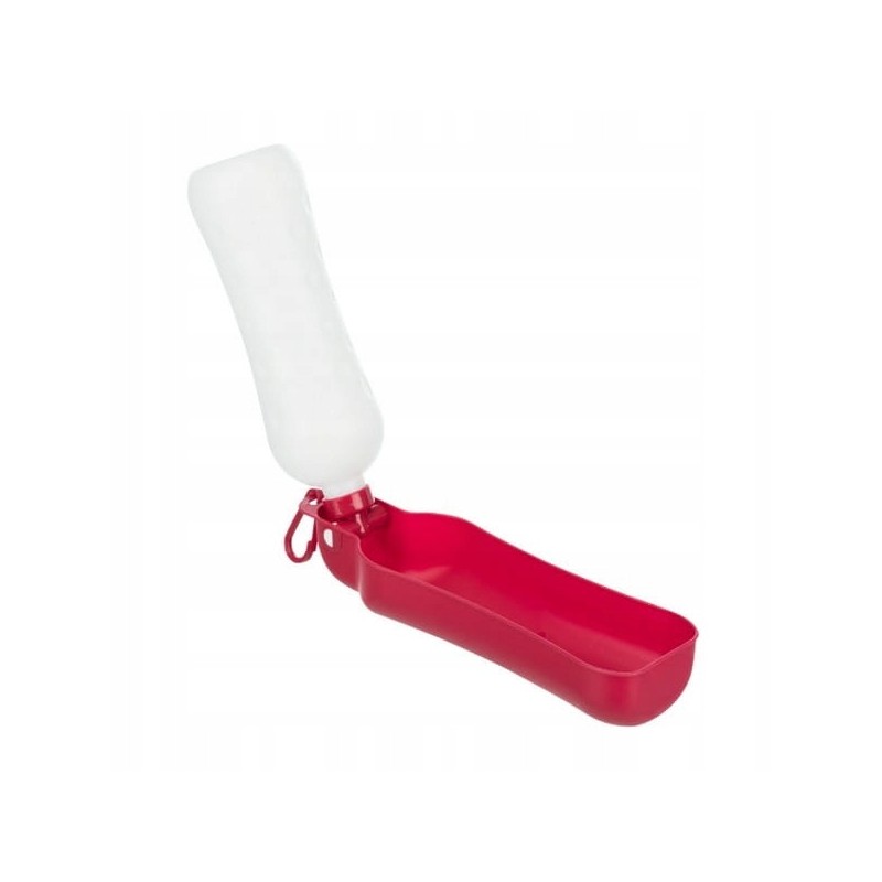 Ta praktyczna butelka z miską to niezbędny element wyposażenia podczas spacerów z psem lub dłuższych podróży. Wykonana z wytrzymałego, lekkiego plastiku, zapewnia łatwe i higieniczne podawanie wody Twojemu pupilowi w każdych warunkach.