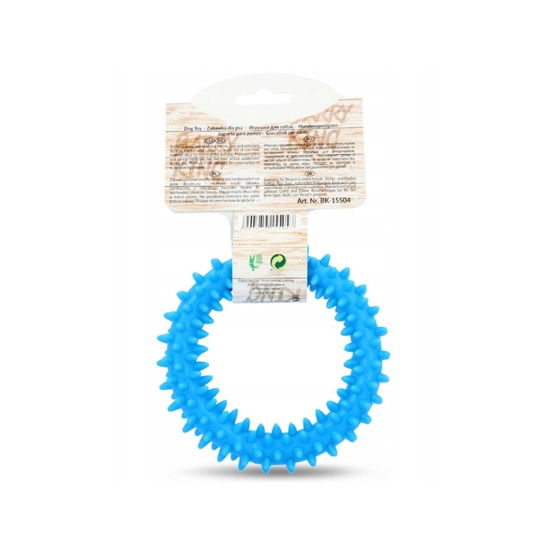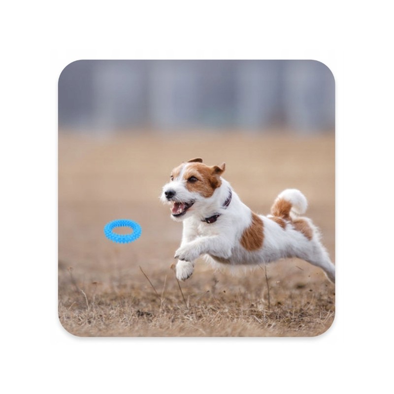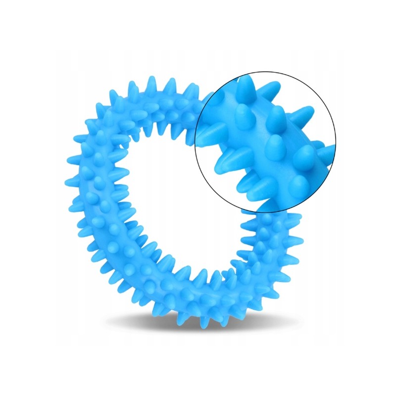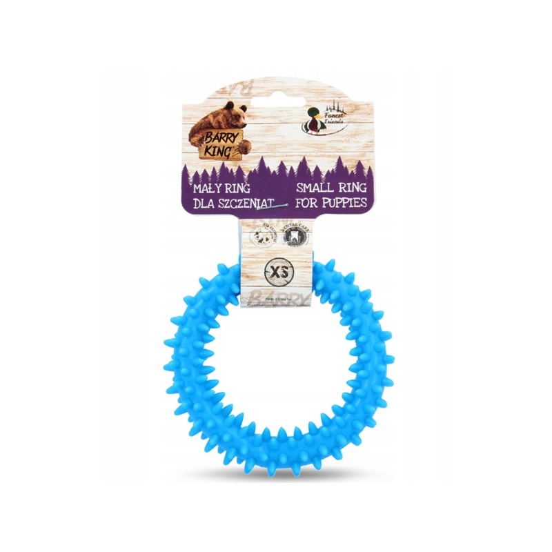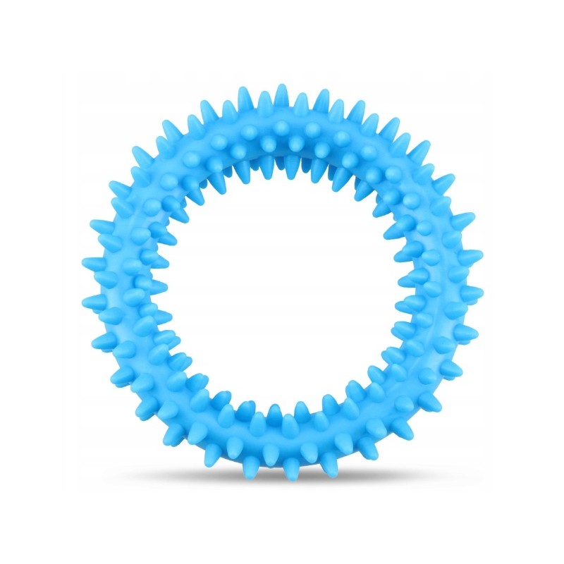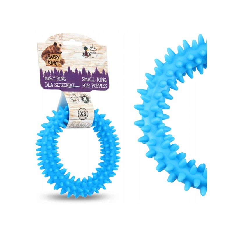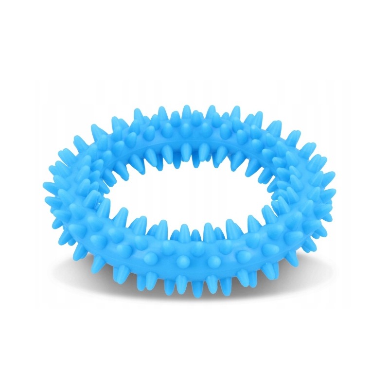 Ten mały ring w rozmiarze XS to specjalistyczne akcesorium treningowe dla szczeniąt, zaprojektowane z myślą o komforcie i bezpieczeństwie najmłodszych psów. Wykonany z wytrzymałego, elastycznego tworzywa sztucznego w intensywnym niebieskim kolorze, posiada średnicę zewnętrzną wynoszącą 9,5 cm. Jego głównym zastosowaniem jest nauka aportowania oraz podstawowych komend w formie zabawy.
