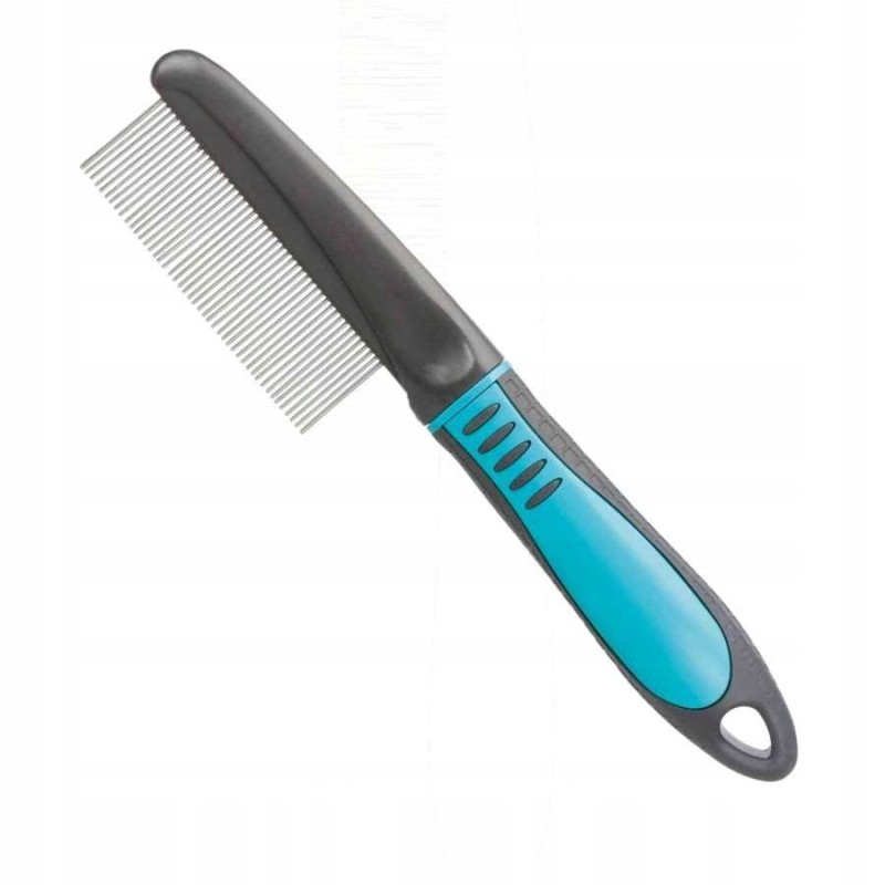 Grzebień jest łatwy w utrzymaniu w czystości – można go myć pod bieżącą wodą z użyciem łagodnego detergentu. To podstawowe, niezawodne akcesorium, które powinno znaleźć się w każdej domowej apteczce weterynaryjnej i kosmetyczce dla zwierząt, wspierając zdrową skórę i piękną okrywę włosową.