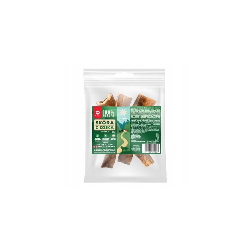 Skóra z dzika krótka to naturalny, w pełni ekologiczny przysmak dla psów, który doskonale sprawdzi się jako nagroda treningowa lub urozmaicenie codziennej diety. Produkt wykonany jest w 100% z czystej, wysuszonej skóry dzika, bez dodatku sztucznych barwników, konserwantów czy wzmacniaczy smaku. Jego naturalne pochodzenie i prosty skład czynią go bezpieczną i zdrową przekąską dla większości czworonogów.