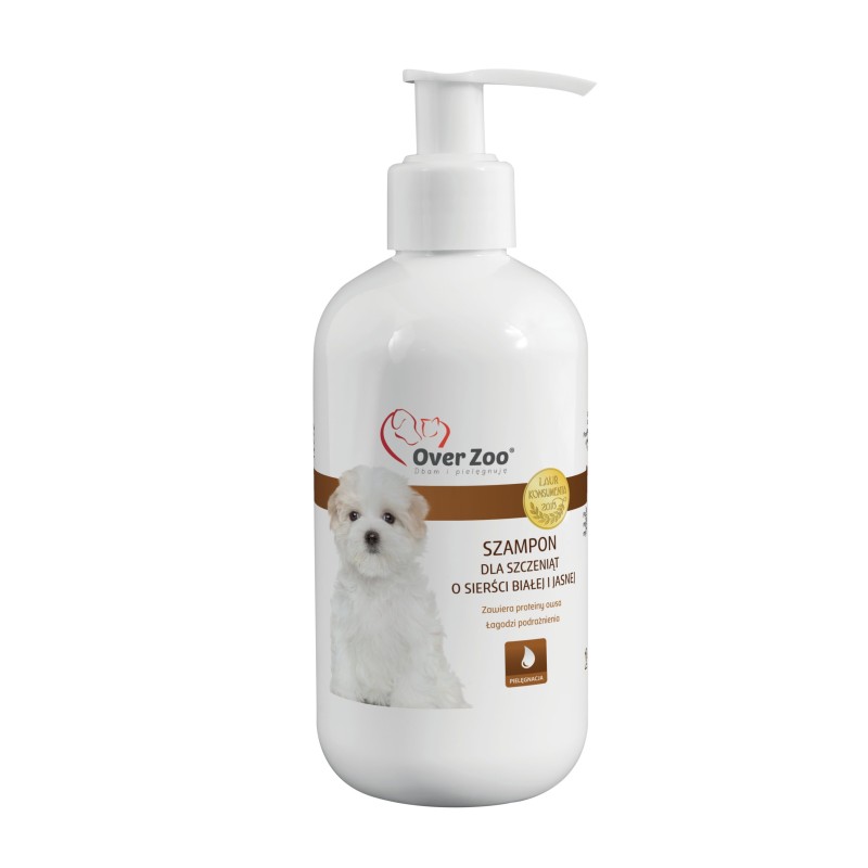 Szampon OVER ZOO dla białych szczeniąt posiada szereg praktycznych cech: