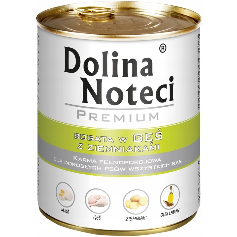 Karma dla psa Dolina Noteci z gęsiną i ziemniakami to kompletna, zbilansowana karma sucha, przeznaczona dla psów dorosłych wszystkich ras. Jej głównym źródłem białka zwierzęcego jest mięso z gęsi, które uznawane jest za wartościowe i łatwostrawne, a także może być dobrą alternatywą dla psów wrażliwszych na bardziej powszechne rodzaje mięs.