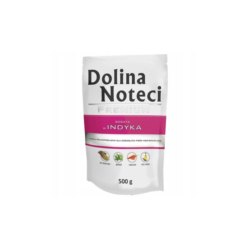 Karma dla psa Dolina Noteci z indykiem to kompletna, zbilansowana sucha karma, stworzona z myślą o codziennym żywieniu psów dorosłych wszystkich ras. Jej głównym i wysokiej jakości składnikiem jest mięso z indyka, które stanowi doskonałe źródło łatwo przyswajalnego białka o niskim potencjale alergizującym.