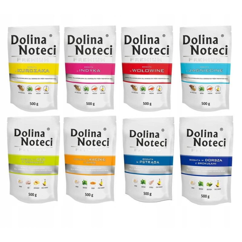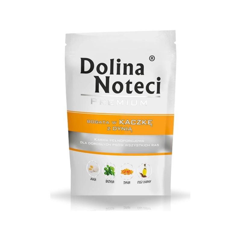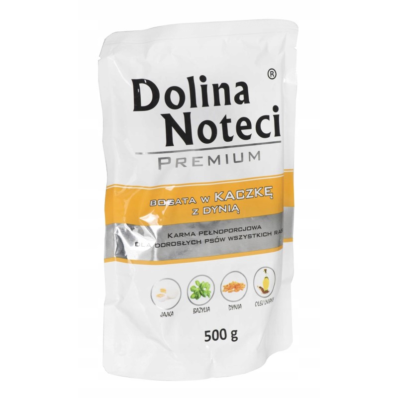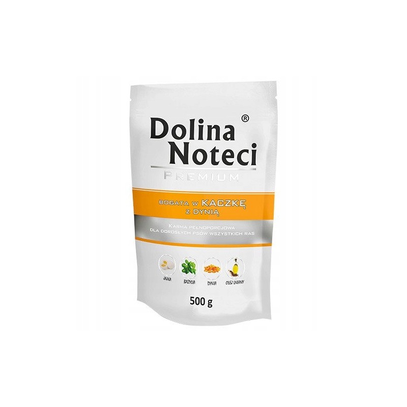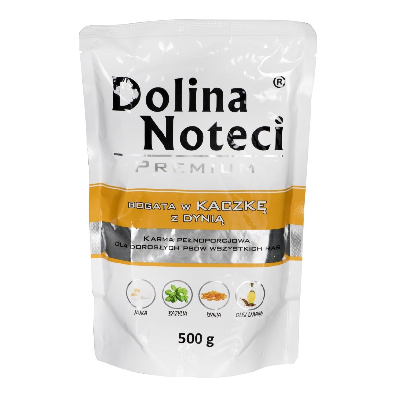 Karma Dolina Noteci z kaczką i dynią jest pakowana w poręczne puszki o wadze 500 gramów, co ułatwia precyzyjne dozowanie dziennej porcji. Zaleca się konsultację z lekarzem weterynarii przed wprowadzeniem nowej diety, szczególnie w przypadku psów ze zdiagnozowanymi problemami zdrowotnymi. Produkt przeznaczony jest dla psów dorosłych wszystkich ras.