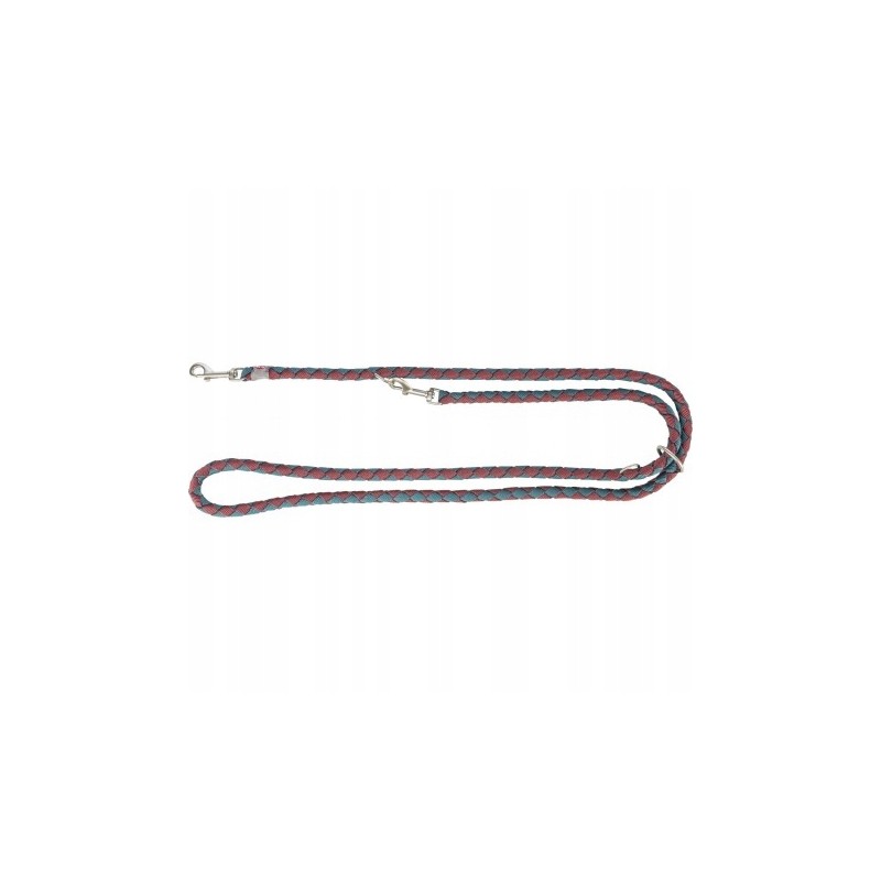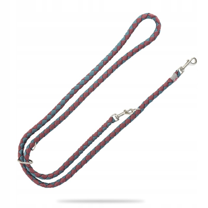Estetyka wykonania również zasługuje na uwagę. Stylowe połączenie dwóch wyrazistych kolorów – bordowego i petrolu – sprawia, że smycz jest nie tylko funkcjonalna, ale i modnym dodatkiem. Wykończenie metalowymi elementami, w tym solidnym karabińczykiem, gwarantuje trwałość i odporność na korozję.