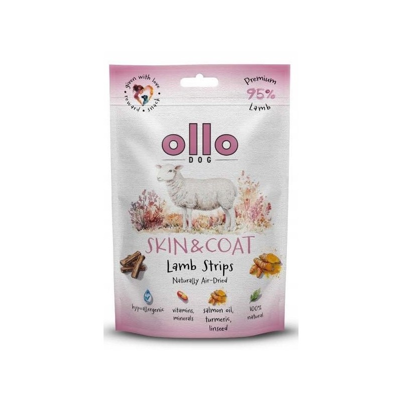 OLLO przysmak strips jagnięcina to pyszna i zdrowa przekąska dla psów, wykonana z wysokiej jakości składników. Te delikatne paski o intensywnym aromacie stanowią doskonały dodatek do codziennej diety lub nagrodę podczas szkolenia i wspólnej zabawy.