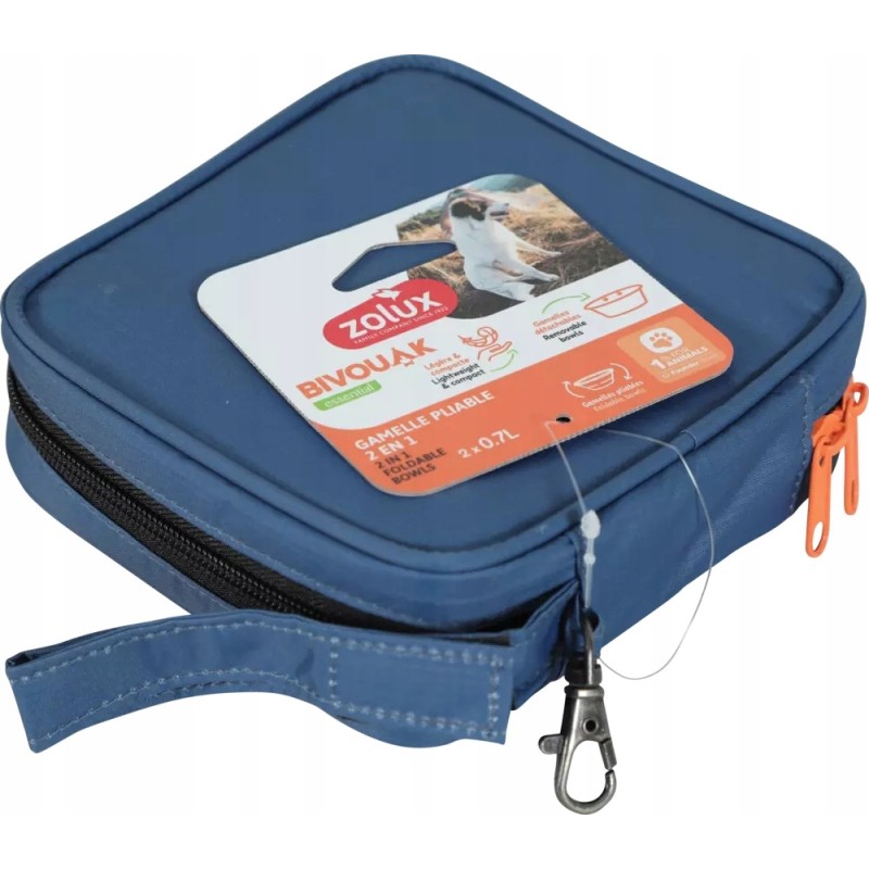 Ta składana miska 2w1 marki Zolux to praktyczne i niezwykle poręczne rozwiązanie dla każdego aktywnego właściciela psa. Wykonana z wytrzymałego, nietoksycznego silikonu, zapewnia bezpieczeństwo Twojemu pupilowi podczas podróży, spacerów czy treningu.