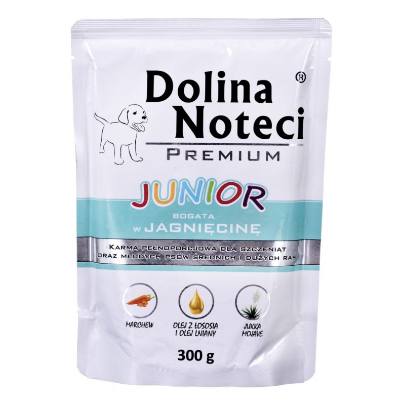 Karma Dolina Noteci Junior z jagnięciną jest pozbawiona sztucznych barwników i konserwantów, co minimalizuje ryzyko alergii pokarmowych. Opakowanie 300g jest wygodne do bezpośredniego podania jako samodzielny posiłek lub jako wartościowe uzupełnienie suchej karmy, zwiększając jej smakowitość. Zaleca się dostosowanie dziennej porcji do wagi, wieku i poziomu aktywności szczenięcia, zgodnie z wytycznymi producenta umieszczonymi na opakowaniu.