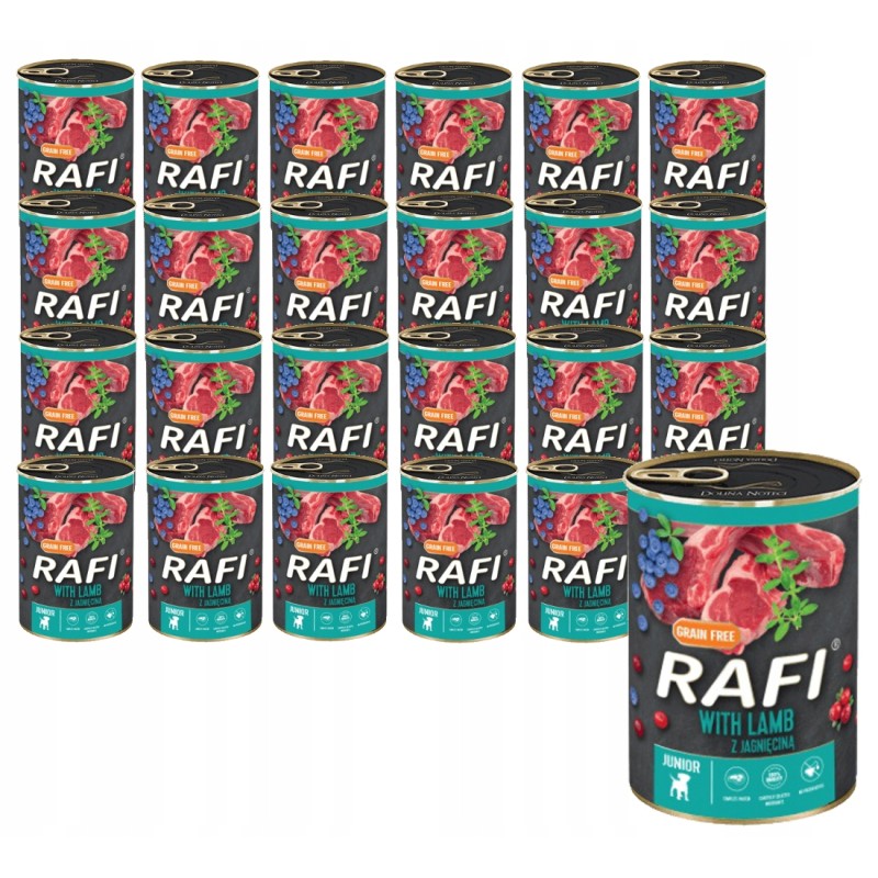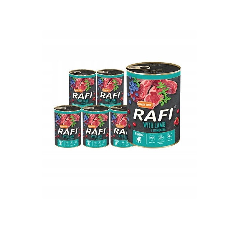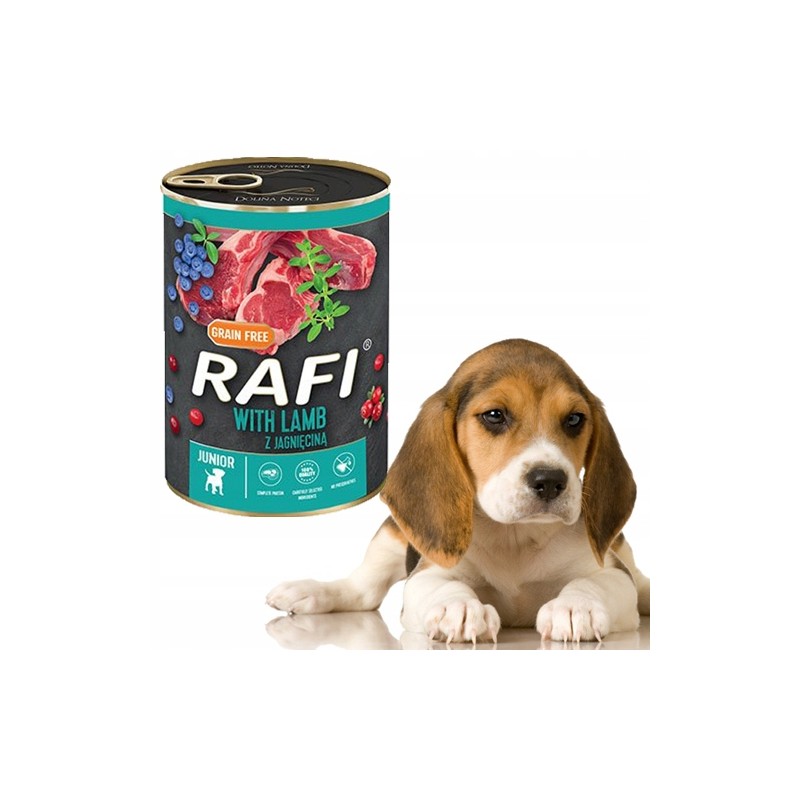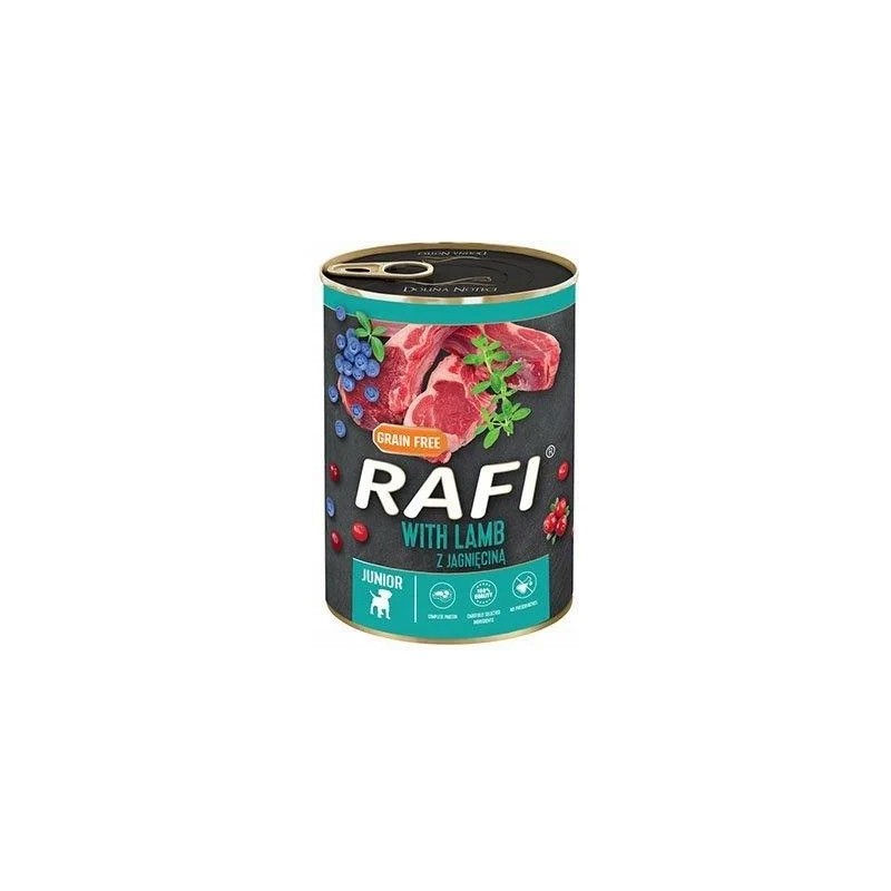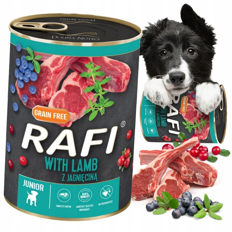 Karma RAFI JUNIOR z jagnięciną, borówką i żurawiną to pełnoporcjowe, suche pożywienie stworzone z myślą o szczeniakach wszystkich ras. Formuła została opracowana tak, aby wspierać harmonijny rozwój młodego organizmu w okresie intensywnego wzrostu.