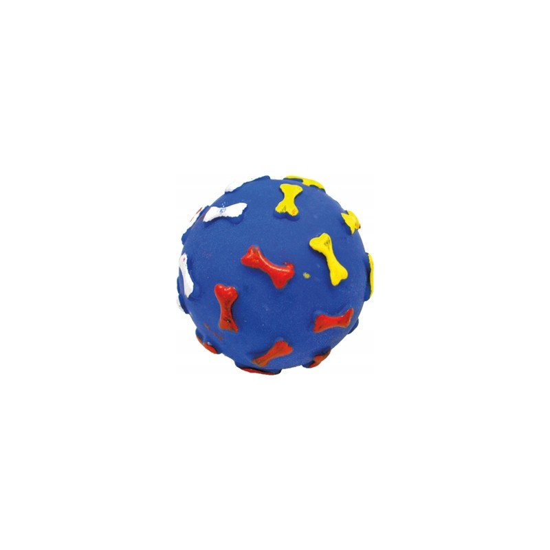 Ta winylowa piłka z wbudowaną grzechotką w formie kostki to klasyczna i wszechstronna zabawka, która sprawdzi się w wielu sytuacjach wspólnej zabawy z psem. Jej kompaktowy rozmiar, około 7,5 cm średnicy, jest odpowiedni dla większości ras, zarówno do aportowania, jak i samodzielnego tarmoszenia.