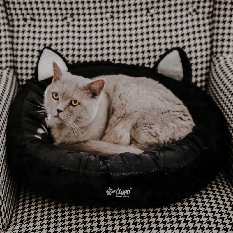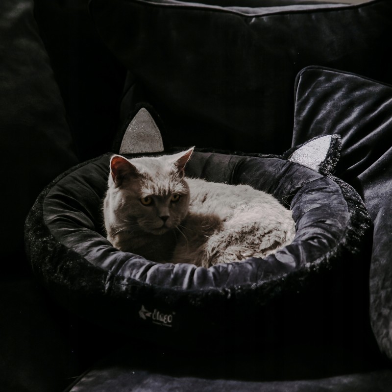 Główną cechą tego modelu są charakterystyczne, odstające uszy, które nadają mu uroczego wyglądu. Czarny kolor jest praktyczny i łatwy w utrzymaniu czystości. Legowisko jest wypełnione gęstą, sprężystą włókniną, która dobrze podpiera stawy i kręgosłup psa, dopasowując się do jego pozycji.