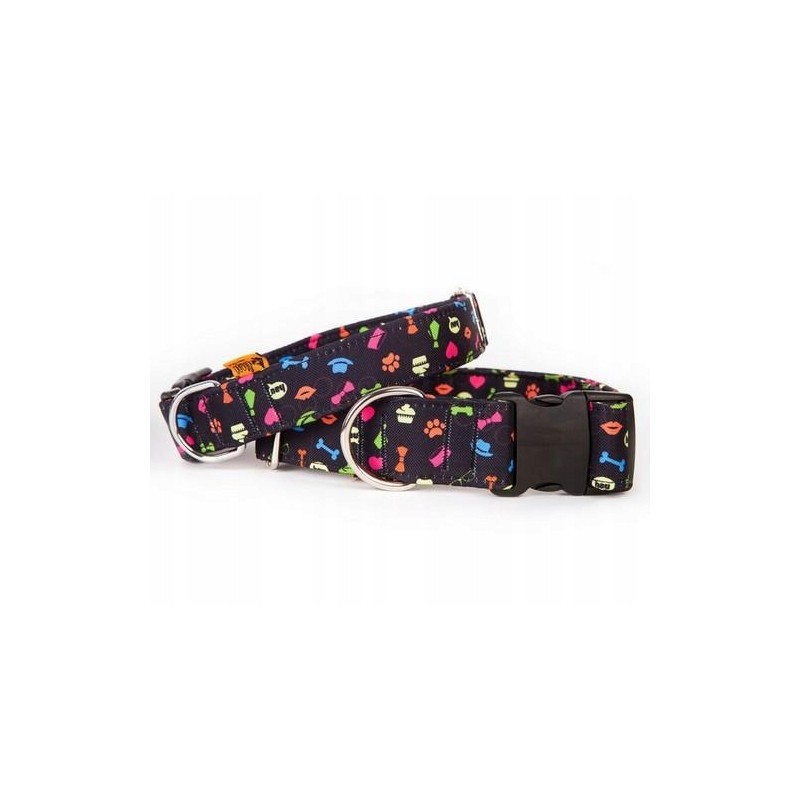 Obroża wykonana jest z mocnej, plecionej taśmy nylonowej o szerokości 2,0 cm, co zapewnia dużą odporność na zerwanie i rozdarcie. Długość obroży wynosi 45 cm, a dzięki systemowi regulacji można ją łatwo dopasować do obwodu szyi psa, gwarantując komfortowe i pewne noszenie. Metalowa, solidna klamra zapinana jest na sprzączkę, co ułatwia i przyspiesza zakładanie oraz zdejmowanie.