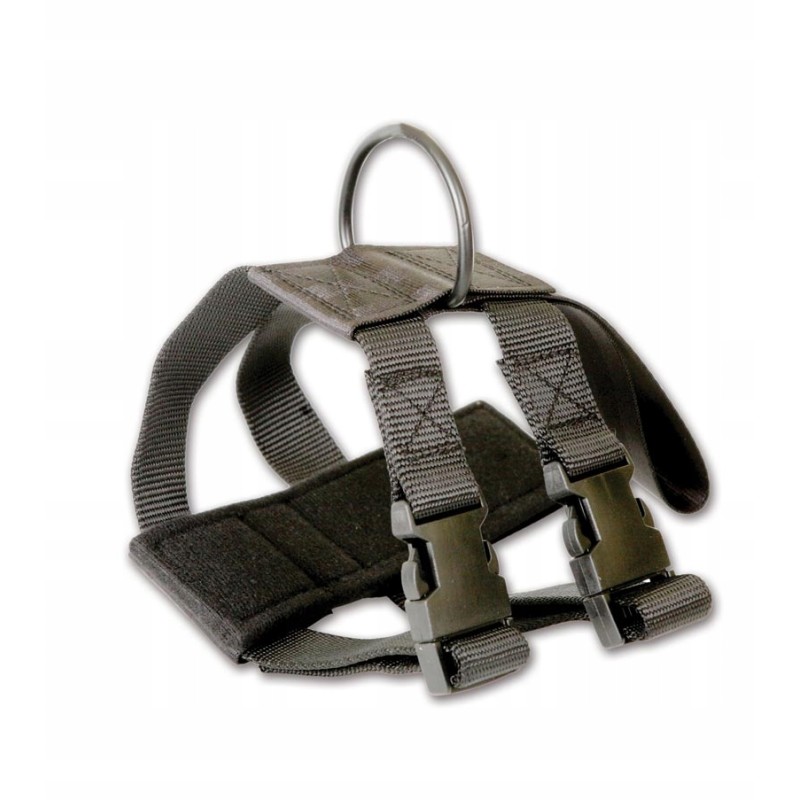 Szelki wykonane są z wytrzymałych, przyjaznych dla zwierząt materiałów. Głównym komponentem jest solidna, regulowana uprząż, która równomiernie rozkłada siły na klatce piersiowej i grzbiecie psa. Łączy się ona z dedykowanym pasem bezpieczeństwa za pomocą niezawodnego, łatwego w użyciu karabińczyka. Dzięki systemowi regulacji w kilku punktach, szelki można idealnie dopasować do budowy psa, zapewniając mu komfort i swobodę oddychania, jednocześnie pewnie go zabezpieczając.