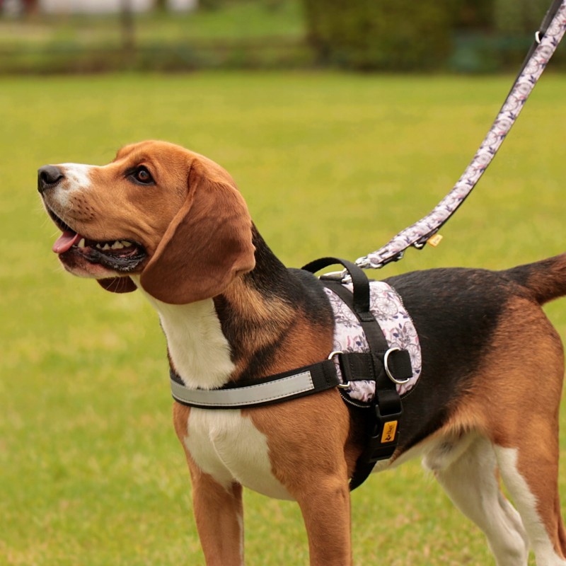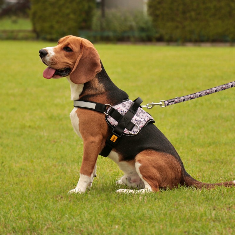 Szelki dla psa Dingo Georgia to model typu guard, który zapewnia komfort i pełną kontrolę podczas spacerów. Wykonane są z wytrzymałej, miłej w dotyku tkaniny poliestrowej, która jest łatwa do utrzymania w czystości. Ich konstrukcja minimalizuje nacisk na kręgosłup i tchawicę psa, rozkładając siłę na klatce piersiowej i barkach.
