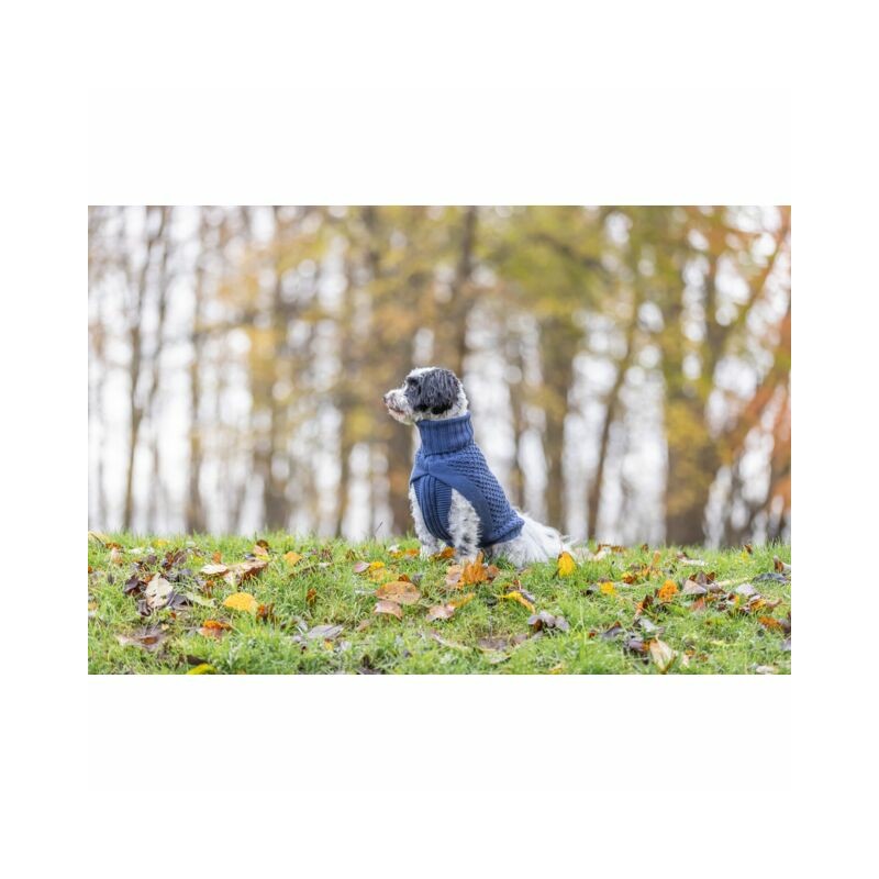 Ten niebieski pulower dla psa marki TRIXIE to praktyczna i stylowa odzież, która zapewni Twojemu pupilowi komfort w chłodniejsze dni. Wykonany jest z miękkiej, przyjemnej w dotyku mieszanki akrylu i wełny, która dobrze izoluje ciepło, jednocześnie pozostając lekka i niekrępująca ruchów.