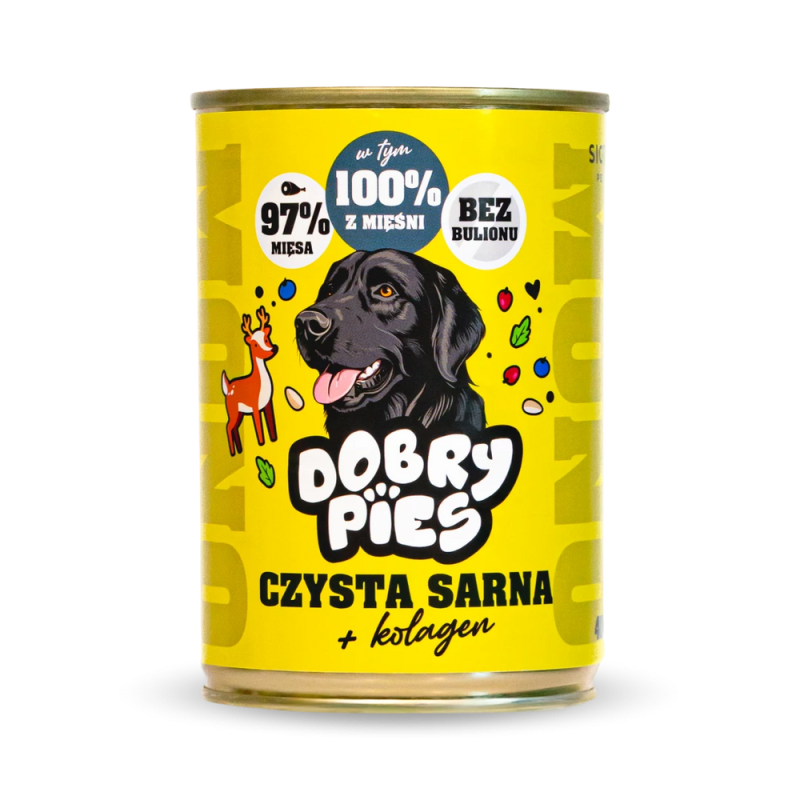 DOBRY PIES Mono czysta sarna (400g) to wybór dla opiekunów, którzy priorytet stawiają na przejrzystość składu i jakość surowca. Pamiętaj, że przy przejściu na nową dietę, szczególnie w przypadku problemów zdrowotnych psa, zalecana jest wcześniejsza konsultacja z lekarzem weterynarii.