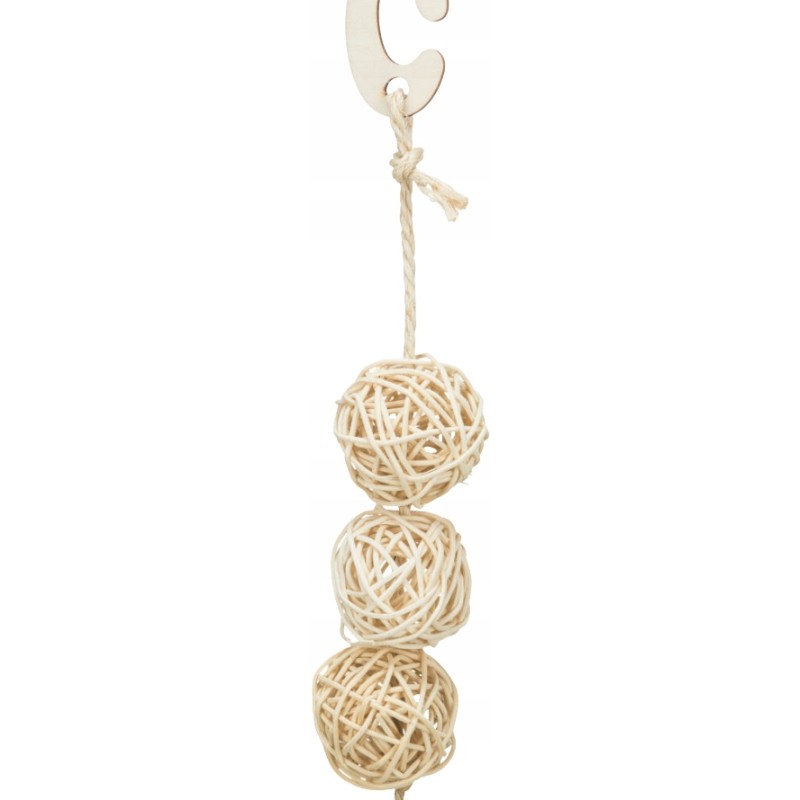 Zabawka TRIXIE to prosty, a jednocześnie skuteczny sposób na wzbogacenie środowiska życia ptaka. Żucie rattanu pomaga w naturalnej pielęgnacji dzioba, a manipulowanie kulami ćwiczy zręczność. Jest to produkt rzetelnej, znanej marki zoologicznej, gwarantujący odpowiednią jakość wykonania.