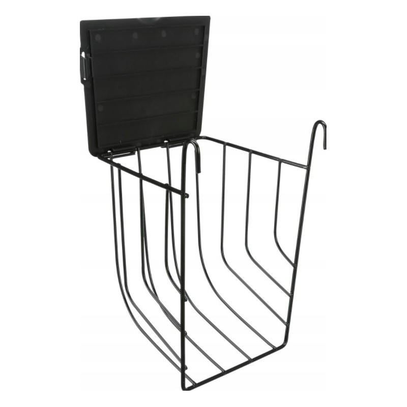 Ten wiszący paśnik dla gryzoni i małych zwierząt marki Trixie to praktyczne i bezpieczne rozwiązanie do podawania świeżego pokarmu. Wykonany jest z wytrzymałego, czarnego plastiku, a mocna metalowa kratka zabezpiecza zawartość, pozwalając pupilowi na wygodne wyciąganie smakołyków.
