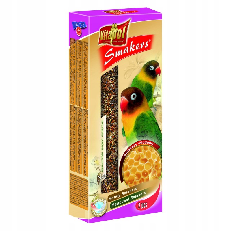 Ten specjalistyczny smakołyk został stworzony z myślą o urozmaiceniu diety popularnych i towarzyskich papużek nierozłączek. Smakers dla nierozłączek-miodowy VITAPOL to atrakcyjna, chrupiąca kostka, która łączy w sobie walory smakowe z wartościami odżywczymi, stanowiąc doskonałe uzupełnienie codziennego jadłospisu.
