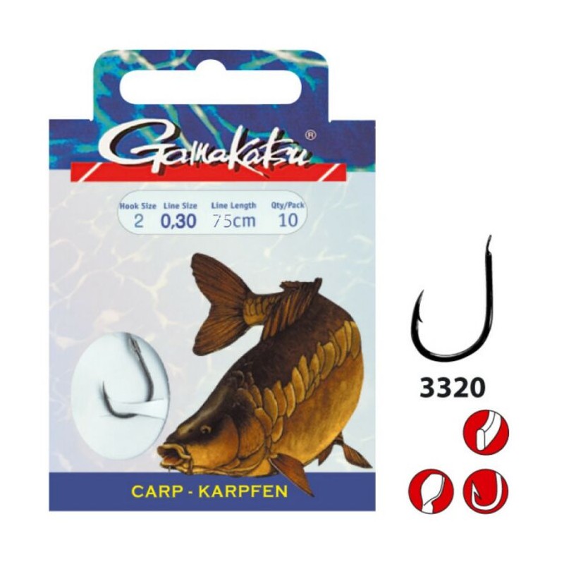 Gamakatsu Haki z Przyponem Karp 3310F r.2/0.30mm/60cm/10szt.