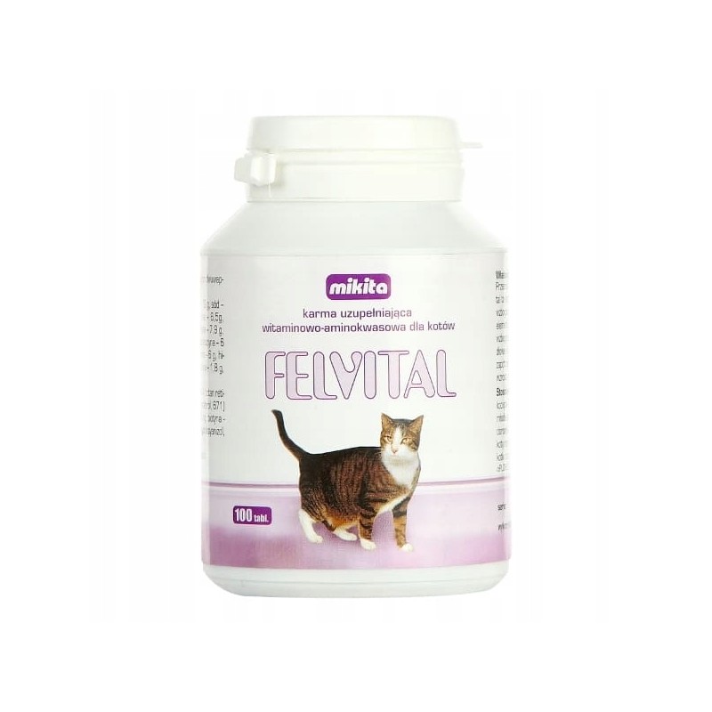 Felvital to suplement diety w formie tabletek, stworzony z myślą o wsparciu ogólnej kondycji i witalności kotów w każdym wieku. Jego starannie dobrana formuła łączy niezbędne witaminy, minerały oraz aminokwasy, które pomagają uzupełnić codzienną dietę, szczególnie ważne dla zwierząt domowych, mało aktywnych lub rekonwalescentów.