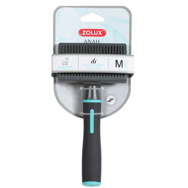 Szukasz skutecznego narzędzia do walki z podszerstkiem i martwą sierścią u swojego psa? Szczotka dla psa z wysuwanymi igłami ANAH M średnia ZOLUX to profesjonalny przyrząd pielęgnacyjny zaprojektowany z myślą o psach średniej wielkości, o gęstym, podwójnym lub długim włosiu.