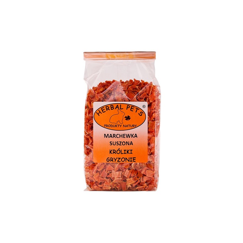 Marchewka suszona HERBAL PETS to naturalny, w pełni bezpieczny przysmak dla gryzoni, królików, szynszyli oraz wielu innych małych zwierząt roślinożernych. Produkt powstaje poprzez delikatne suszenie wyselekcjonowanych, pełnowartościowych marchwi, co pozwala zachować ich smak, aromat oraz większość cennych składników odżywczych.