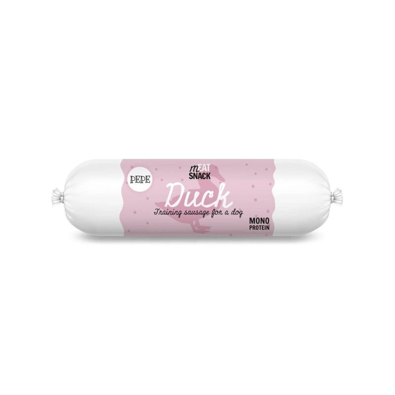 Kiełbaska PEPE kaczka to wysokiej jakości, naturalna przekąska dla psów, która z pewnością skradnie serce Twojego czworonoga. Wykonana jest w 100% z mięsa kaczki, co czyni ją nie tylko wyjątkowo smakowitą, ale także doskonałym wyborem dla zwierząt z delikatnym układem pokarmowym lub nietolerancjami na bardziej powszechne rodzaje mięs, takie jak drób czy wołowina.