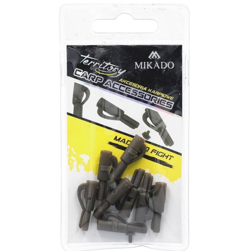 Standardowy klips bezpieczny z dodatkowym bolcem - zatyczką, blokującą krętlik wewnątrz klipsa. Takie rozwiązanie skutecznie poprawia efekt samozacięcia i zależnie od potrzeb, może ułatwić gubienie ciężarków podczas połowu w zaczepach.