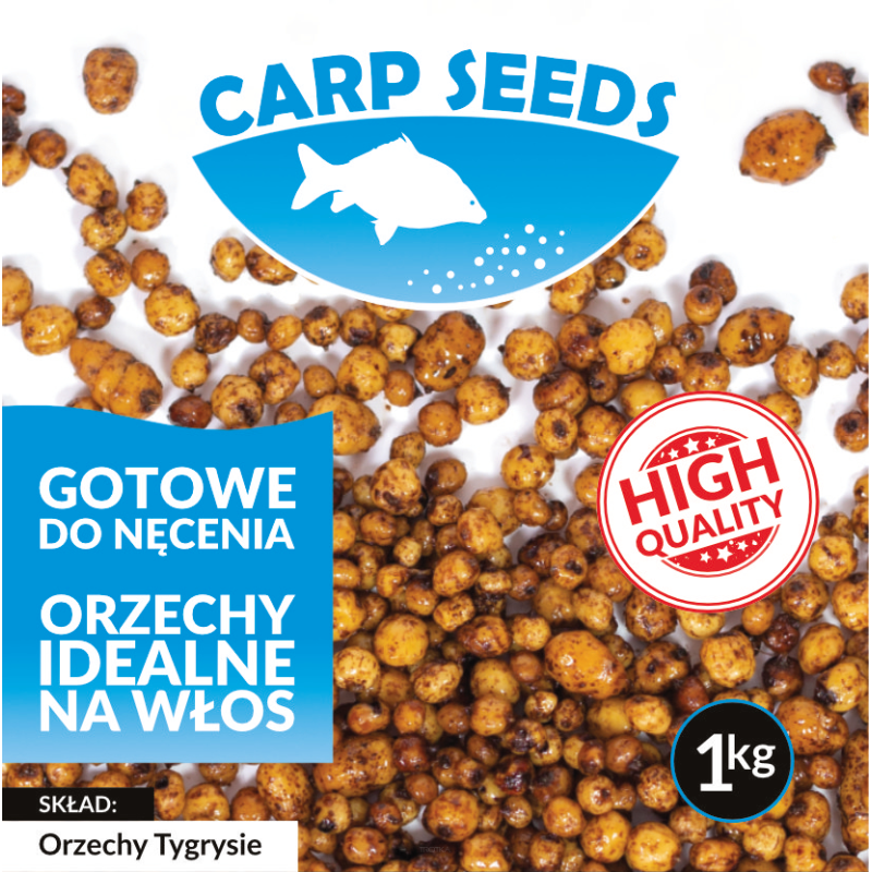 Produkt na wielkie ryby. Karpie i amury na prawdę to uwielbiają. Gotowe orzechy tygrysie Carp Seeds pomogły pobić PB wielu wędkarzy. Jednym słowem – zanęć, załóż na włos i złów swój rekord.
