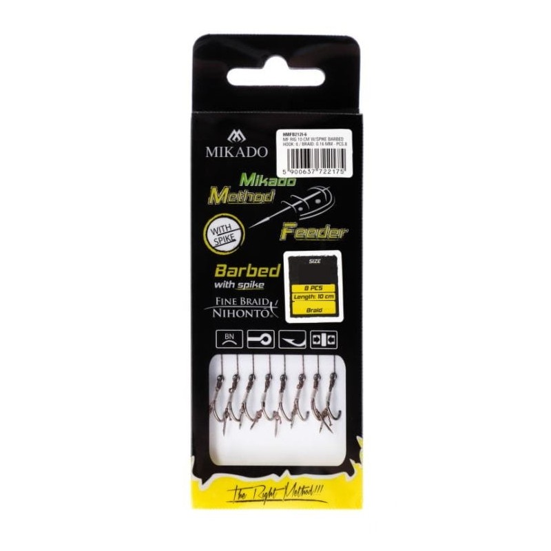 Mikado MF to specjalistyczna plecionka z igłą, zaprojektowana z myślą o precyzyjnym i wygodnym montażu włosów oraz przyponów. Każda sztuka to gotowy, 10-centymetrowy odcinek plecionki o średnicy 0,12 mm, zakończony na stałe igłą w rozmiarze 12/0. To rozwiązanie eliminujące konieczność samodzielnego dobierania i wiązania tych elementów, co znacząco przyspiesza pracę nad zestawem.