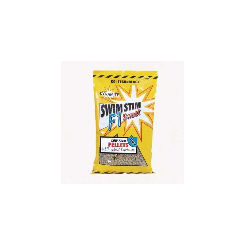 Dynamite Baits Swim Stim F1 Sweetto wysokogatunkowy pellet tworzony na bazie mączek rybnych. Pellet ma mocny, słodki zapach. Świetnie sprawdza się w ciepłych, płytkich zbiornikach. Do stosowania w podajnikach do metody. (Można używać samego pelletu lub łączyć go z zanętą).