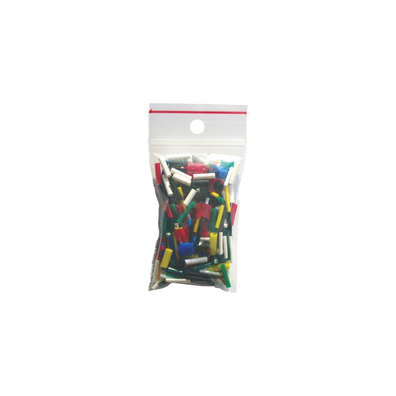Zestaw pociętych koszulek igielitowych, różne długości, wielkości i kolory.