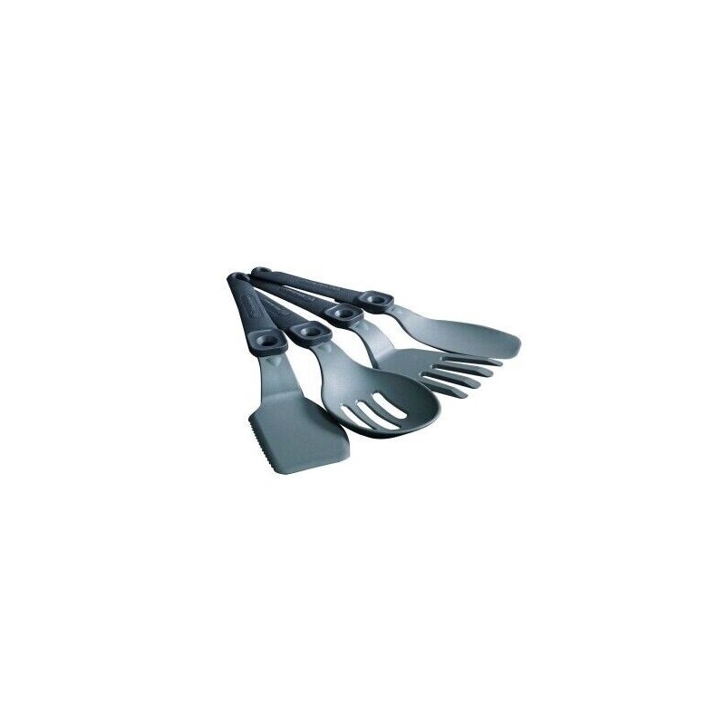 Zestaw narzędzi kuchennych składający się z 4 elementów, które znacznie ułatwią przygotowywanie najbardziej wyszukanych posiłków nad wodą. W skład zestawu wchodzi rozwidlona szpatuła, szpatułka z ząbkowanymi krawędziami, duża łyżka oraz łyżka cedzakowa. Każde z narzędzi posiada wygodny system składania Q-Lock, który daje kompaktowe rozmiary transportowe narzędzi a także specjalne zakończenie z szerokim haczykiem ułatwiającym przechowywanie na karpiowym biwaku. Dzięki powłoce fluoropolimerowej pokrywającej narzędzia, wszelkie zanieczyszczenia łatwo zmyjemy za pomocą ciepłej wody i płynu - oczywiście narzędzia można użytkować również w domu i wówczas są przystosowane do mycia w zmywarce. W zestawie z narzedziami znajduje się neoprenowy pokrowiec transportowy.
