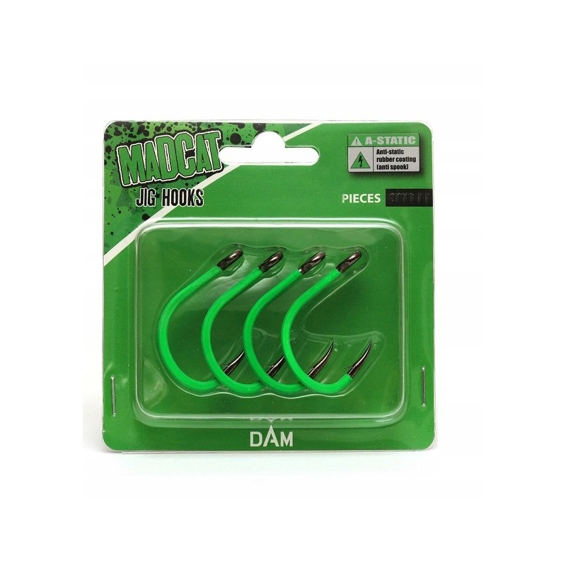 Ultraostre i lekkie haki jigowe z oczkiem. Idealne do wertykalnego jigu oraz zestawów z podwodnym spławikiem. Wykonane z wysokiej jakości stali japońskiej, wyjątkowo ostre i wytrzymałe. W wykończeniu antystatycznym – MADCAT® A-STATIC gomowana otulina zmniejsza tworzenie się pola elektrostatycznego, dzięki czemu cała przynęta jest mniej podejrzliwa dla sumów. UWAGA: otulina może zdzierać się wraz użytkowaniem haków.