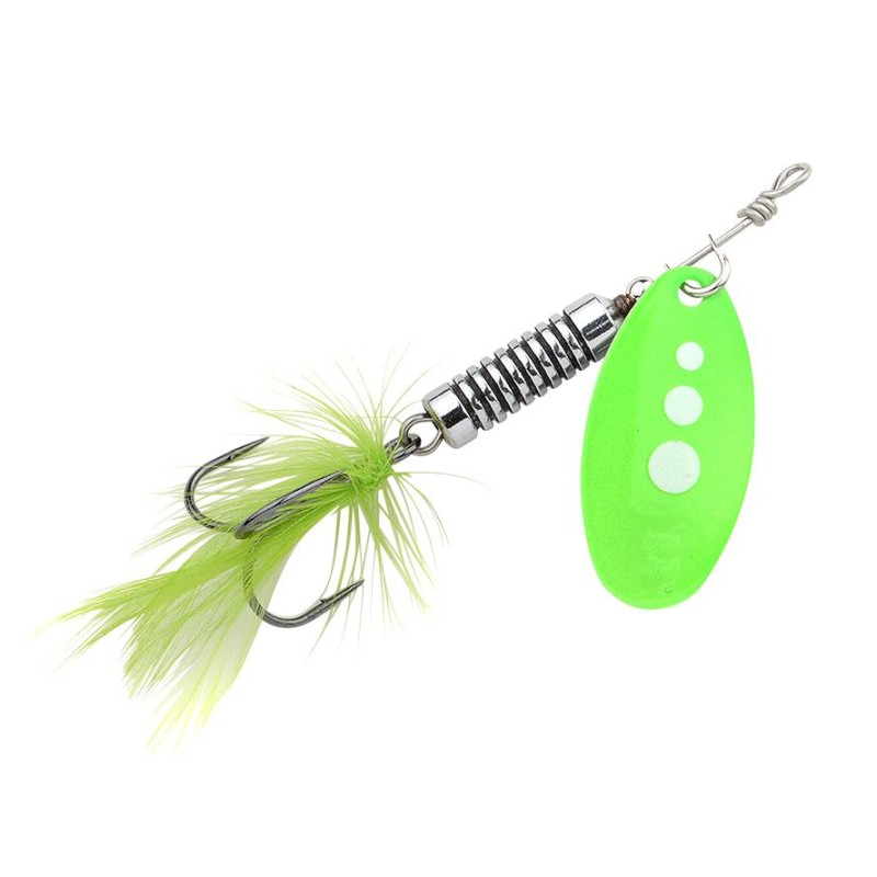Tradycyjne obrotówki z ostrą kotwicą ozdobioną seledynowym chwostem. Wyposażone w wyważoną, okrągłą paletkę co powoduje idealnie zbalansowaną wagę przynęty.