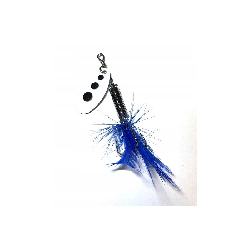 Tradycyjne obrotówki z ostrą kotwicą ozdobioną niebieskim chwostem. Wyposażone w wyważoną, okrągłą paletkę co powoduje idealnie zbalansowaną wagę przynęty.