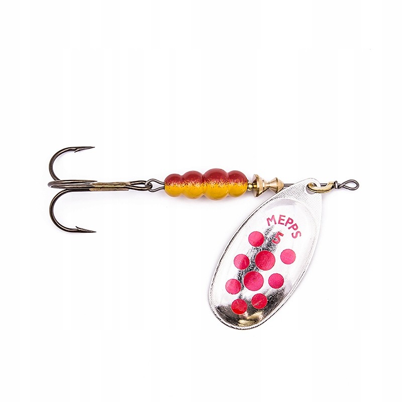 AGLIA DECOREES kolejny klasyk MEPPS-a, tylko pozornie czerwone i czarne kropki na standardowych paletkach typu Aglia to taki sobie bezładny ozdobnik. Tymczasem podczas wirowania tworzy się w wodzie paskowana smuga o zależnych od prędkości obrotów przejściach tonalnych, gradientach znakomicie uatrakcyjniająca łowność błystek.