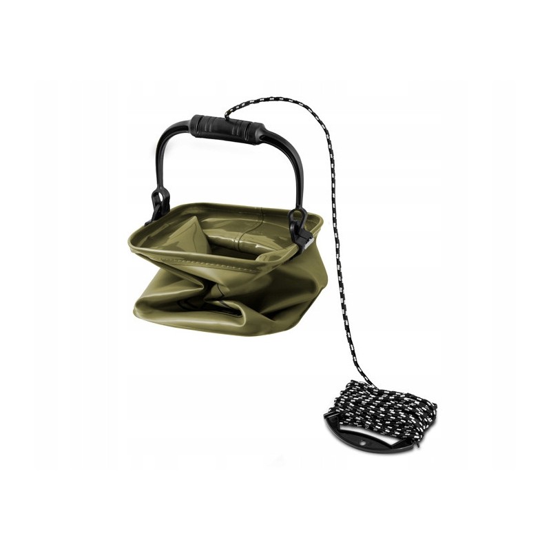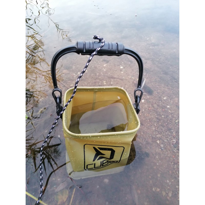 Delphin CUBO to praktyczne wiadro, wykonane z wodoodpornego materiału EVA o minimalnych wymiarach transportowych, dzięki czemu zajmuje bardzo mało miejsca w Twoim ekwipunku. Może być używany do polewania ryb na brzegu, ale także do transportu wody użytkowej, przygotowań zanęty czy też bez problemu przechowasz w nim różne akcesoria podczas wyprawy nad wodę. Charakteryzuje się kwadratowym kształtem, w którym mieści się więcej wody niż w wiadrze o okrągłym kształcie o takich samych wymiarach transportowych. Zaletą takiego kształtu jest również możliwość polewania wodą wolniej przez róg lub mocniej z całej krawędzi wiadra. Dzięki praktycznemu uchwytowi, na który nawinięta jest linka, możliwe jest czerpanie wody nawet w trudnym terenie z większej odległości lub z łodzi. Zaletą jest również solidna plastikowa rączka, dzięki której bez problemu można przenosić wypełnione CUBO. Delphin CUBO jest sprzedawany w dwóch rozmiarach: 5 L i 10 L.