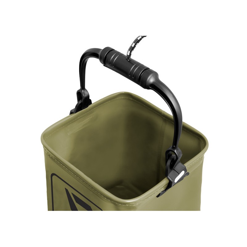 Delphin CUBO to praktyczne wiadro, wykonane z wodoodpornego materiału EVA o minimalnych wymiarach transportowych, dzięki czemu zajmuje bardzo mało miejsca w Twoim ekwipunku. Może być używany do polewania ryb na brzegu, ale także do transportu wody użytkowej, przygotowań zanęty czy też bez problemu przechowasz w nim różne akcesoria podczas wyprawy nad wodę. Charakteryzuje się kwadratowym kształtem, w którym mieści się więcej wody niż w wiadrze o okrągłym kształcie o takich samych wymiarach transportowych. Zaletą takiego kształtu jest również możliwość polewania wodą wolniej przez róg lub mocniej z całej krawędzi wiadra. Dzięki praktycznemu uchwytowi, na który nawinięta jest linka, możliwe jest czerpanie wody nawet w trudnym terenie z większej odległości lub z łodzi. Zaletą jest również solidna plastikowa rączka, dzięki której bez problemu można przenosić wypełnione CUBO. Delphin CUBO jest sprzedawany w dwóch rozmiarach: 5 L i 10 L.