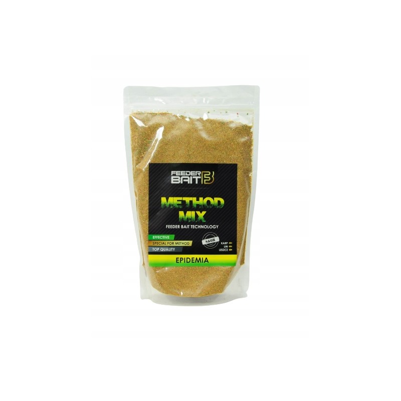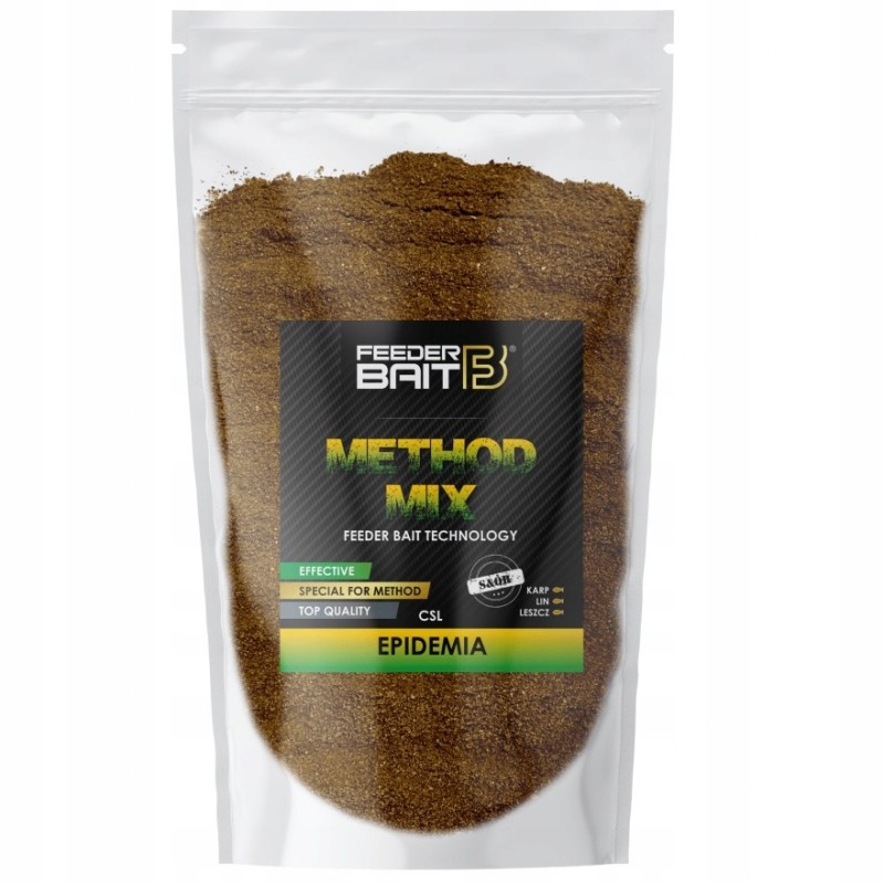 Epidemia powstała w celu zaspokojenia potrzeb wędkarzy, którzy przykładają dużą uwagę do pracy mixu oraz jego składu w rozbiciu na wartości odżywcze. CSL na bazie, którego powstała Epidemia jest bogaty w takie składniki jak aminokwasy, witaminy i łatwo strawne białka. Cząsteczki CSL zawarte w miksie bardzo szybko pracują uwalniając swoje frakcje, dzięki czemu w polu łowienia szybko pojawiają się ryby. Ale to nie koniec, cząsteczki CLS uwalniają ze swojej struktury fermentowany aromat, dzięki czemu na dnie tworzy się swego rodzaju chmura, zawiesina, która utrzymuje się przez wiele godzin i wabi ryby ze znacznie większych odległości. Dzięki swoim właściwościom Method Mix Epidemia bardzo dobrze sprawdza się na łowiskach o znacznym zamuleniu dna, na których nieprzyjemny zapach utrzymujący się przy dnie dominuje większość przynęt i zanęt. Skład; CSL, mączka rybna, olej, drożdże piwne, mielone ziarna, produkty piekarnicze.