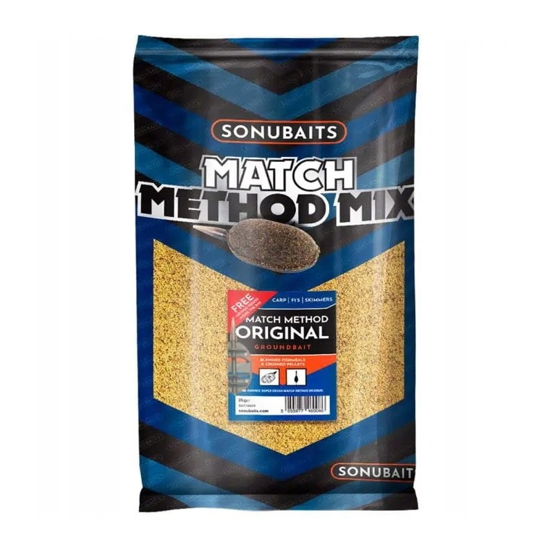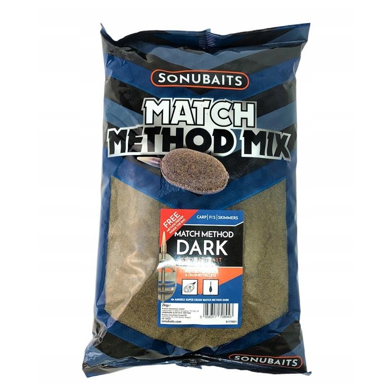 Zanęta Sonubaits Match Method Mix dedykowana method feeder, ale jej skuteczność sprawdzi się też w innych technikach gruntowych, jak również i w spławiku. Jej skład to mączki rybne i mielone pellety, co działa bardzo dobrze na ryby, zwłaszcza te większe. Jest drobno zmielona i dobrze chłonie wodę. Bardzo dobrze sprawdza się w połączeniu z pelletami 2 mm, w stosunku 1do 1, w tak zwanym miksie 50/50. Zanęta Sonubaits Match Method Mix to niewątpliwie najpopularniejsza zanęta wędkarska.