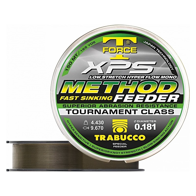 Szybko tonąca żyłka specjalnie zaprojektowana do łowienia na method feeder. Trójwarstwowa struktura składająca się z wewnętrznego rdzenia pokrytego powłoką ceramiczną, warstwy odpornej na ścieranie oraz zewnętrznej powłoki silikonowej. Mało rozciągliwa o dużej czułości, bez efektu pamięci. Kolor jasnobrązowy.